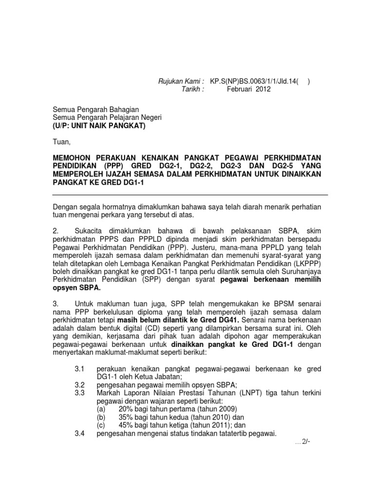 Surat Memohon Perakuan Kenaikan Pangkat Ke Dg1 1 Pdf